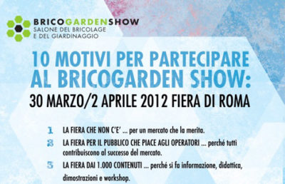 Nasce BricoGardenShow, la prima edizione si terrà nei padiglioni della Fiera di Roma dal 30 marzo al 2 aprile 2012. La titolarità e l’organizzazione di BricoGardenShow è di Publifiere.