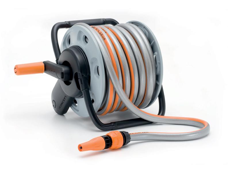 Il MINI CONCEPT READY 15 è fornito già montato ed equipaggiato con 15 m di tubo, raccordi e lancia a spruzzo ed è l’ideale per giardini di medie dimensioni, terrazzi e balconi.