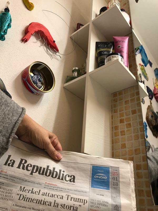 Lo dimostra il video che abbiamo girato durante l’installazione di un mobiletto a mensole nel “bagno dei pesci”.