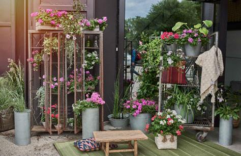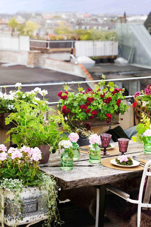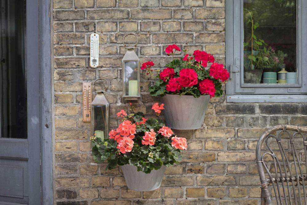 Se non avete un giardino, ma magari potete usare il cortile, potete ricreare un po’ di verde “urbano” con qualche vaso di zinco, cassette di legno, vecchi carrelli e mensole da giardino, cestini e fioriere anche a terra: i gerani, sia cascanti sia tradizionali, si prestano a decorare e abbellire ogni angolo.