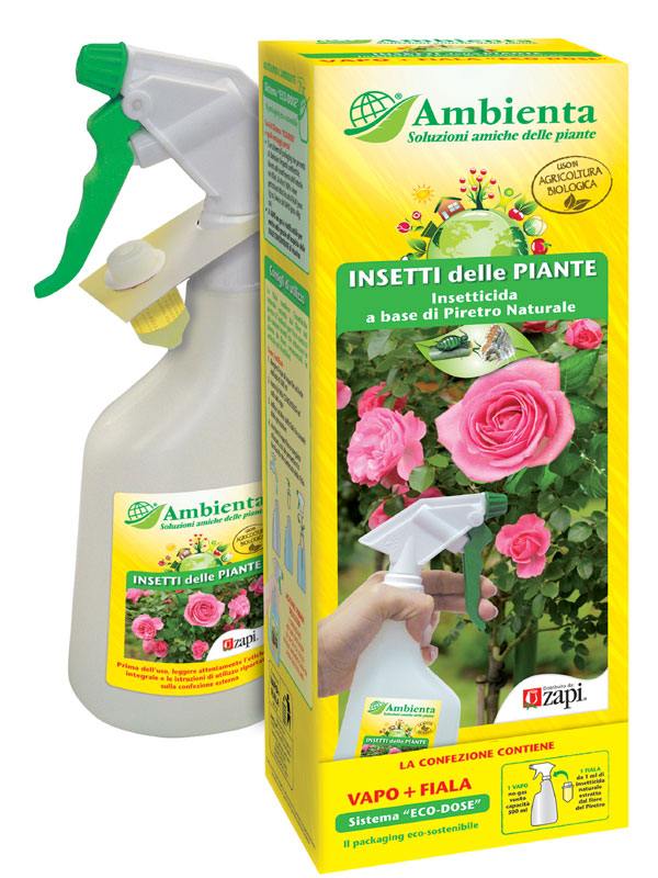 In questo caso il nostro suggerimento va su Ambienta di Zapi, un insetticida di origine, appunto, naturale estratto dal fiore di Piretro e quindi ammesso in Agricoltura Biologica.