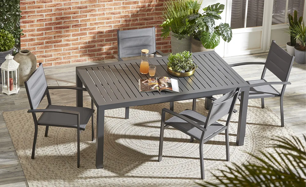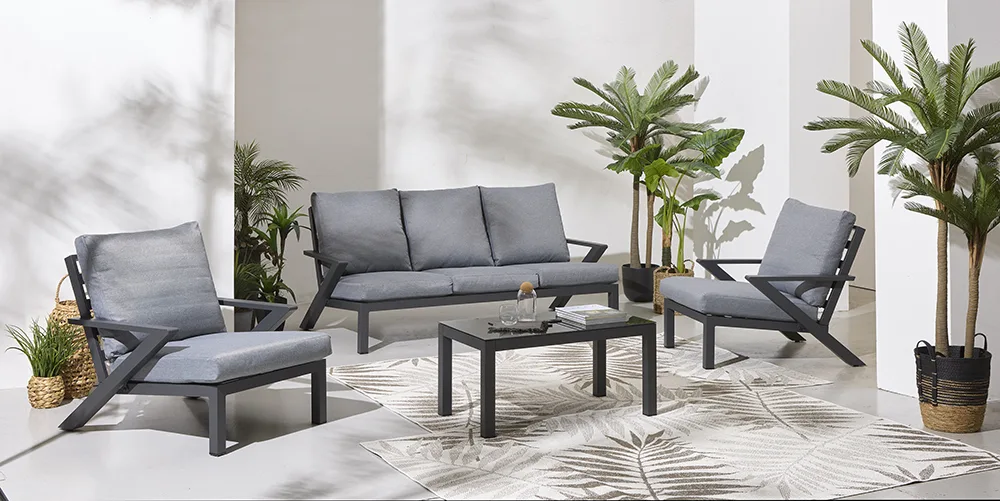 Con la sua struttura in alluminio e cuscini comodi, è la scelta perfetta per chi cerca un equilibrio tra comfort e design contemporaneo, senza rinunciare alla praticità.