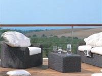 Tre le nuove proposte per il 2010 di RD International particolarmente interessante è la linea Geo, composta da divano a due posti, poltrona sovrapponibile, tavolino ovale e tondo.