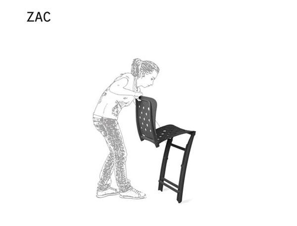 Anche Zac, semplicemente schiacciando un piccolo bottone, si ripiega facilmente su sè stessa, liberando spazio, sia nelle stagioni favorevoli quando può restare in giardino, o ancor più quando, nei mesi invernali deve essere riposta in spazi che non bastano mai.