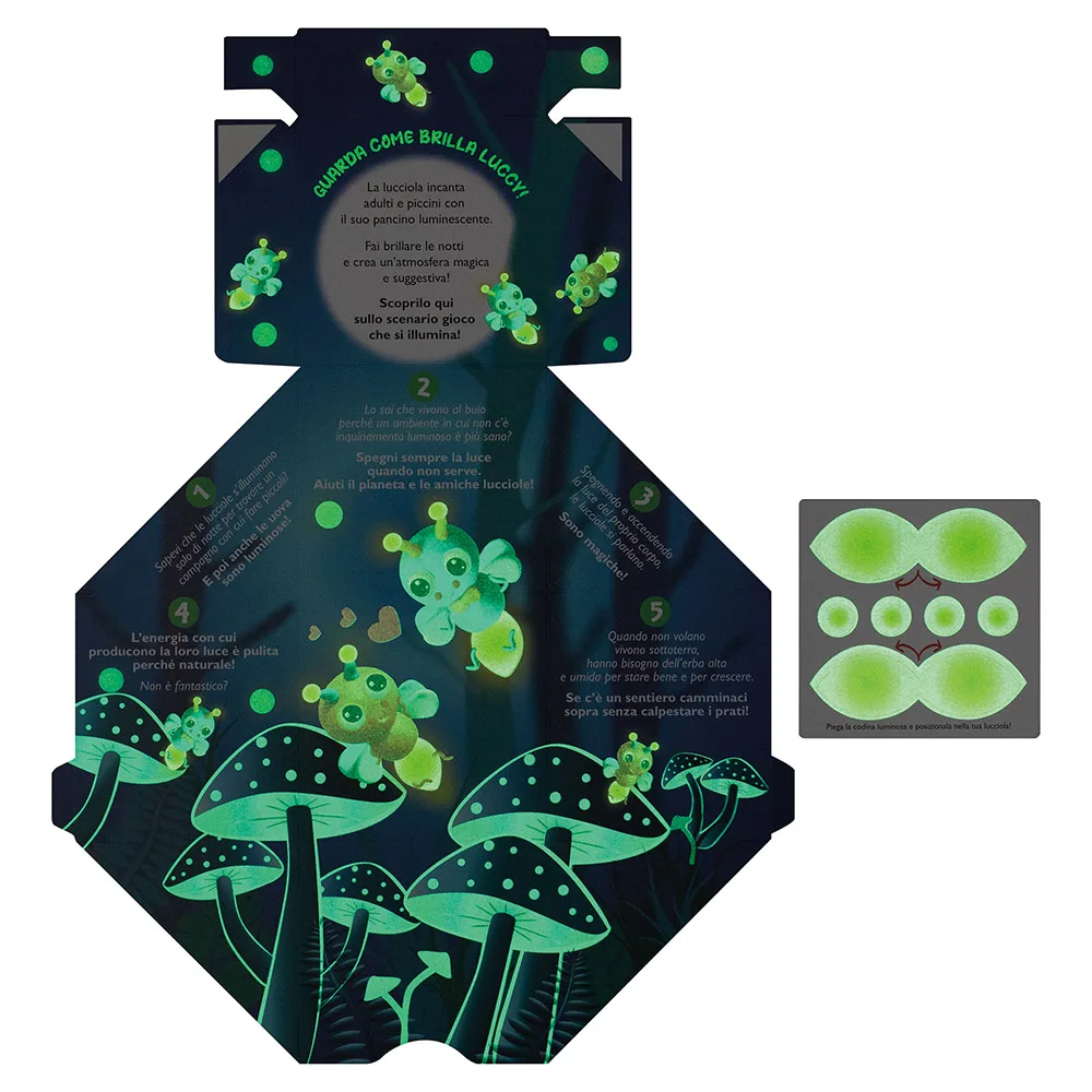 Con Luccy, bambine e bambini imparano a conoscere e proteggere questi piccoli insetti luminosi, modellandoli con gli strumenti Didò e scoprendo uno scenario che si illumina al buio, ricco di curiosità e consigli pratici per salvaguardarle.