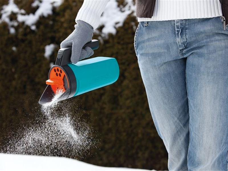 Per rendere più agevole ed efficace questo lavoro Gardena ha progettato uno spargisale pratico da utilizzare grazie all’esclusivo sistema di dosaggio e comodo da regolare anche indossando i guanti.