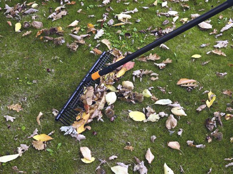 I rastrelli per terreno e per erba, un rastrello aeratore, uno per rose, uno universale e scope per foglie.