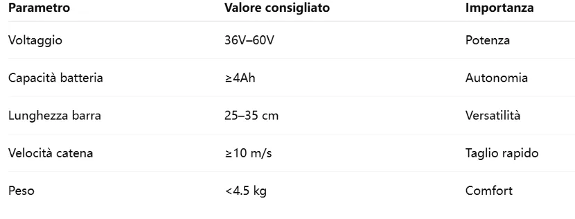 In sintesi, una motosega a batteria di qualità superiore nel 2026 dovrebbe possedere le seguenti caratteristiche: