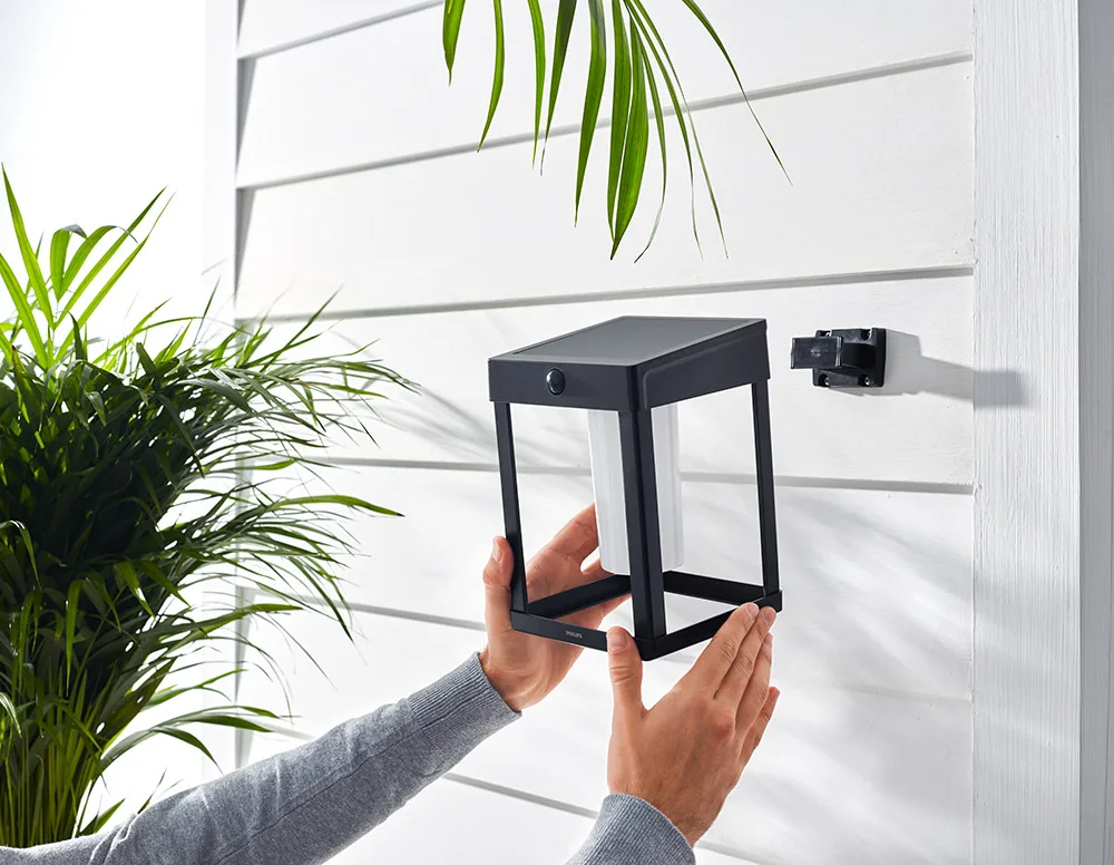 Philips Camill: l’applique LED da esterno con design piacevolmente retrò garantisce una luce diffusa e brillante. Totalmente alimentata a energia solare, la batteria è ottimizzata grazie, non solo alla tecnologia LED Ultra Efficient, che permette di risparmiare il 50% di energia, ma anche al sensore Dusk to Dawn e al sensore di movimento.