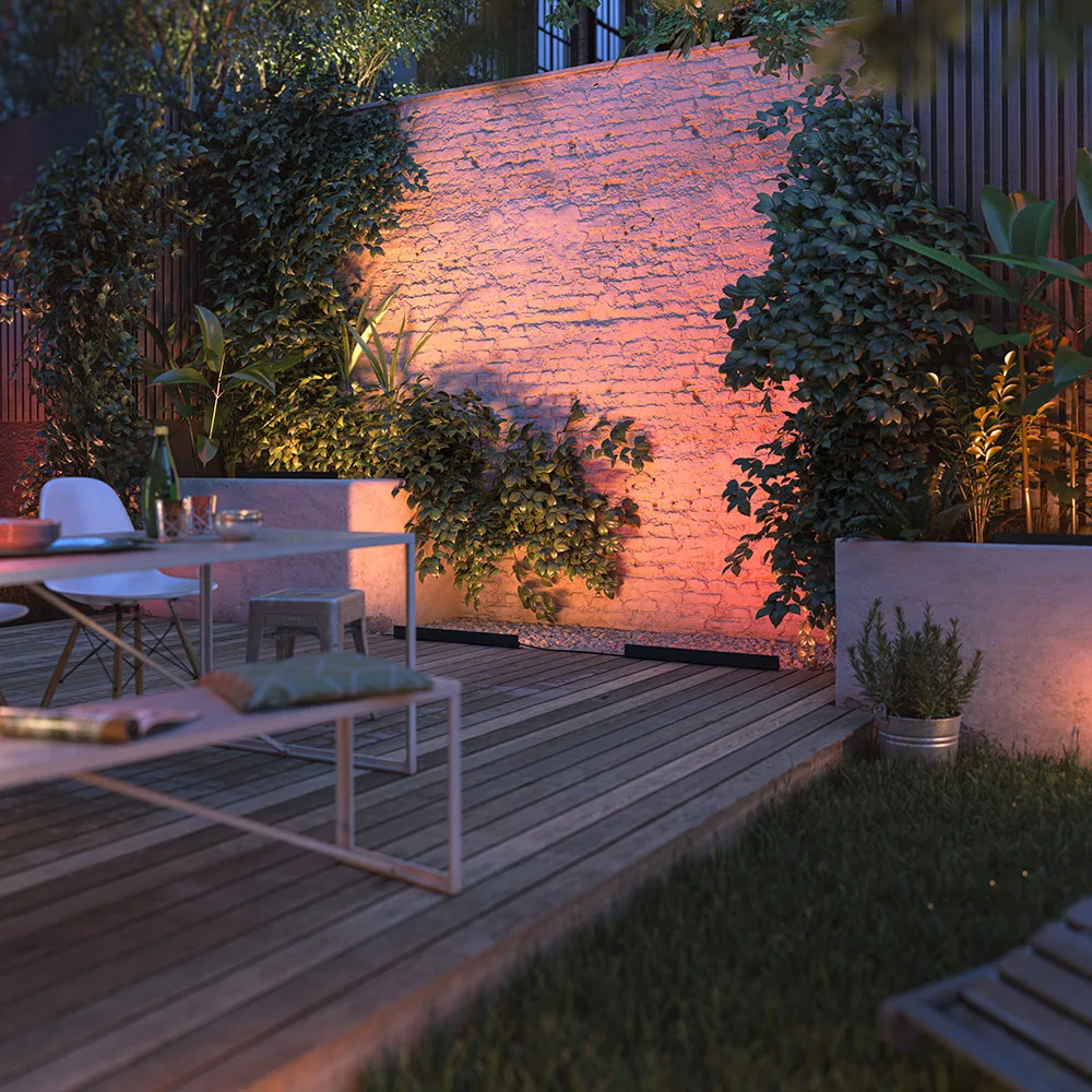 La lampada lineare Hue Amarant garantisce un’illuminazione perfetta per le grandi aree esterne come muri, recinzioni o siepi. Caratterizzata dal sistema LowVolt, ossia un sistema di illuminazione a basso voltaggio si collega semplicemente e in totale sicurezza a una qualsiasi presa a muro standard ed è adatta ad ogni condizione climatica e facile da installare.
