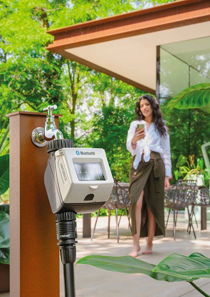 Per questa necessità ci siamo fatti aiutare negli anni da Claber, azienda specializzata nella progettazione e produzione di sistemi per l’irrigazione del verde. Per la stagione 2025 vogliamo segnalare un sistema, approntato dalla ricerca Claber, che risulta essere un momento di sviluppo tecnologico rispetto in particolare ai programmatori a cui siamo abituati.