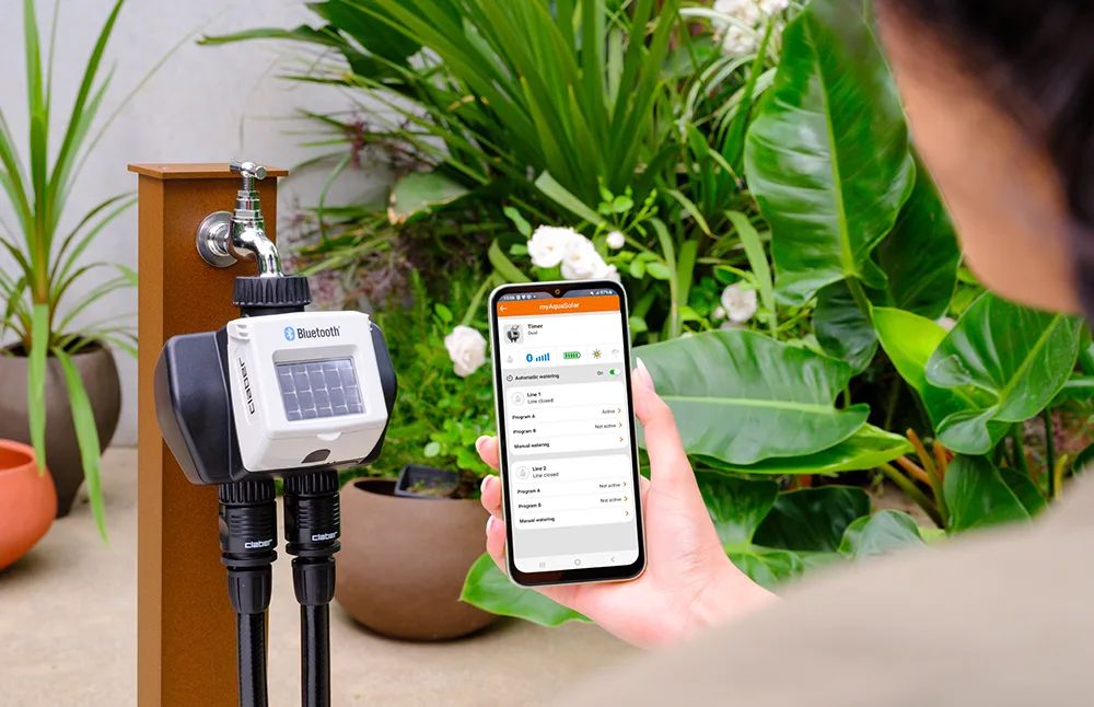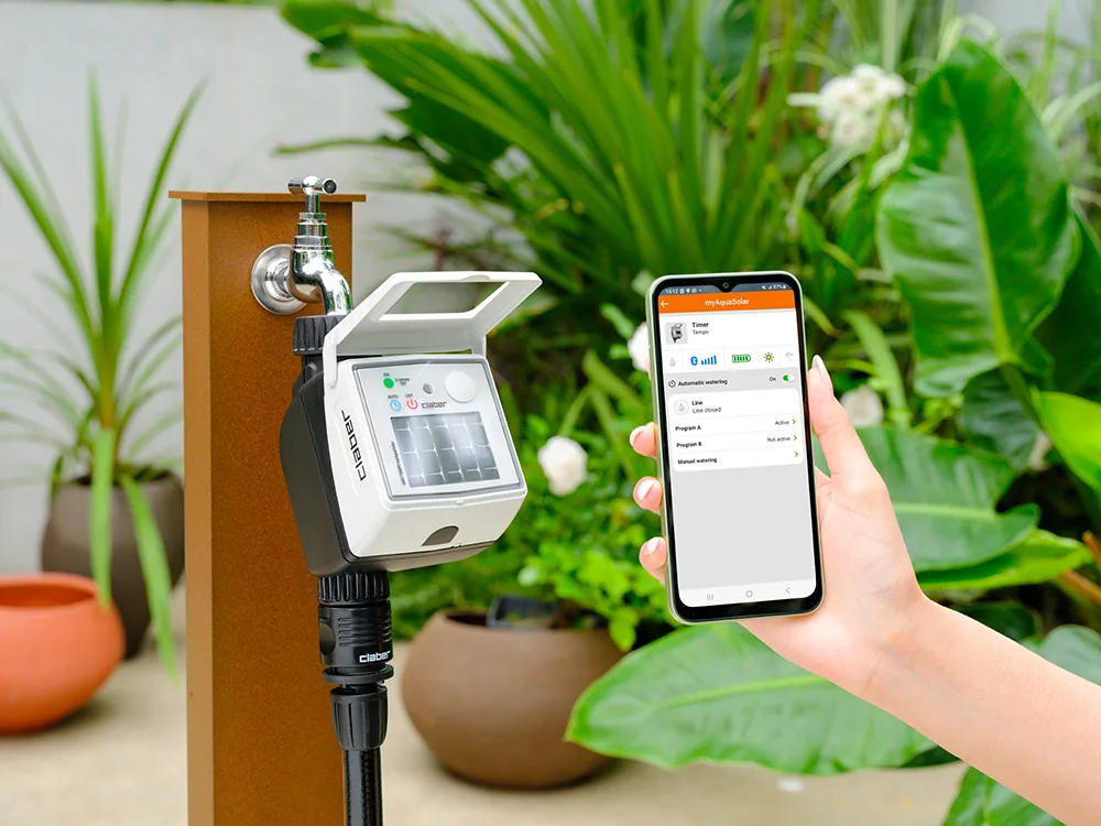 Il programmatore myAquaSolar può essere integrato con i kit per irrigazione a goccia Claber “vasi”, “terrazzo” o “orto” e con Rain Sensor Claber, per sospendere automaticamente l’irrigazione in caso di pioggia.