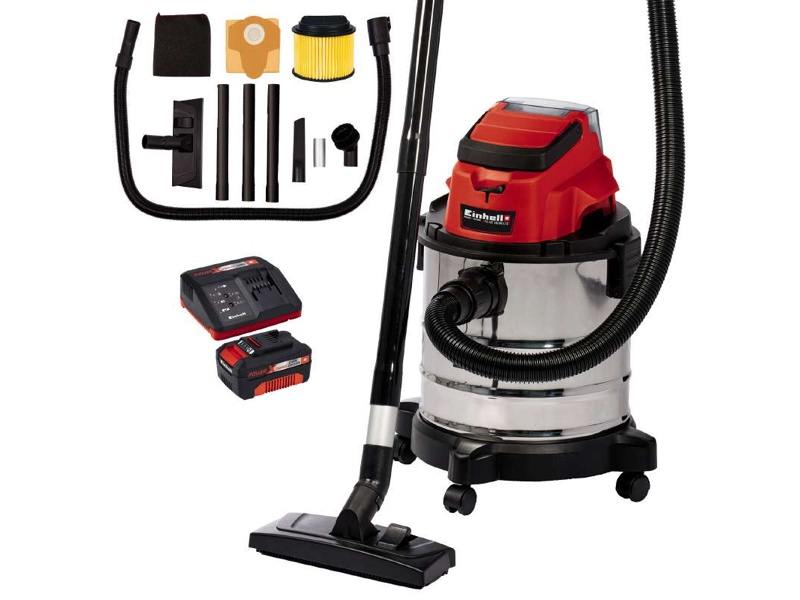 Si tratta dell’aspiratore Einhell TC-VC 18/20 Li – KIT, venduto con una batteria da 3.0 Ah e caricabatteria.