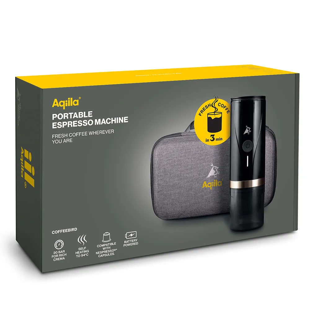 Coffebird è una macchina da caffè espresso compatta e portatile, che con un solo pulsante prepara il caffè in cialda senza fatica e in qualsiasi momento. Godersi un buon caffè dopo una gita in bici, una passeggiata in montagna, o perché no sotto l’ombrellone è puro comfort.