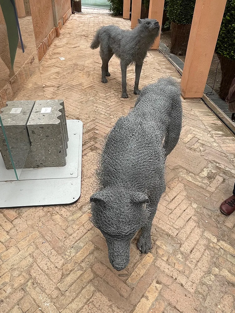 Nella settima sala, dedicata alla Natura (Nature) dominano i materiali naturali, con una posizione di rilievo ovviamente per il legno. L’ingresso di questa sala è impreziosito dalla presenza di due lupi e un somarello realizzati modellando della rete metallica.