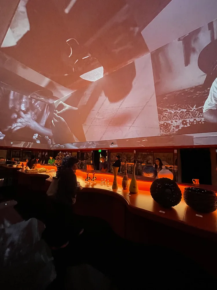 Le ultime due sale, dedicate al Dialogo (Dialogues) e alla Morte (Afterlife) si chiudono con alcune suggestive installazioni e una grande libreria illuminata a forma di piramide.