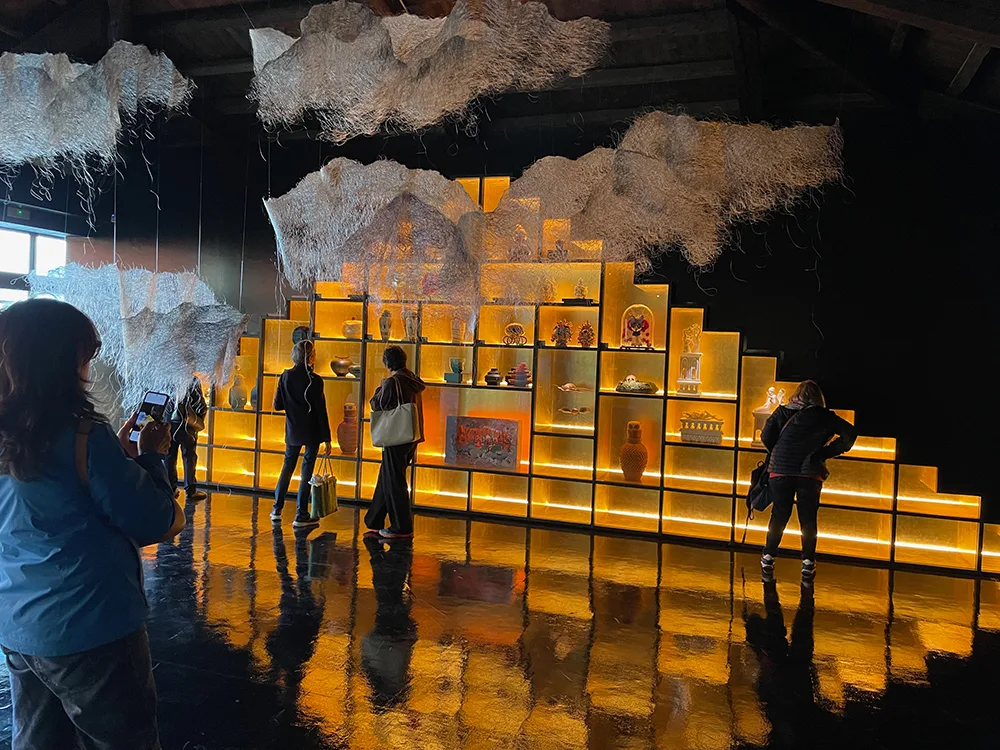 Al terzo momento, dedicato alla Celebrazione (Celebration), si arriva passando tra due giganteschi cipressi in carta alti 12 metri per arrivare in una sala dominata da un grande tavolo con il piano a specchio su cui sono posati manufatti che rappresentano l’arte della tavola (piatti, bicchieri e suppellettili), di bellezza unica e realizzati in vetro, cristallo argento e altri materiali nobili o nobilitati. La quarta sala, intitolata l’Eredità (Inheritange) è sovrastata da immagini filmate di maestri artigiani all’opera, che creano una forte suggestione dando una dimensione storica agli oggetti esposti.