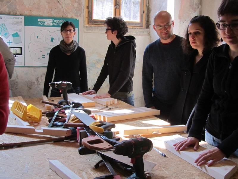 Alla falegnameria di Cascina Cuccagna a Milano, in zona Porta Romana, a partire da sabato 8 marzo i designer di IFU, il giovane marchio italiano che progetta e insegna ad auto-costruirsi arredi, corredi e accessori di design per la casa e il giardino, organizza una serie di corsi che varrebbe davvero la pena di seguire. Lo diciamo perché sabato 8 marzo Bricoliamo era presente durante il corso pomeridiano che aveva come obbiettivo la costruzione di uno sgabello.