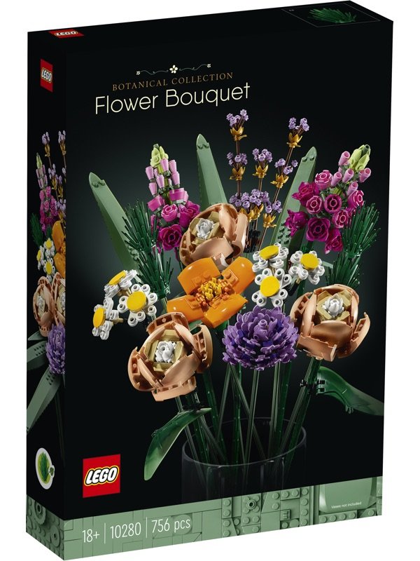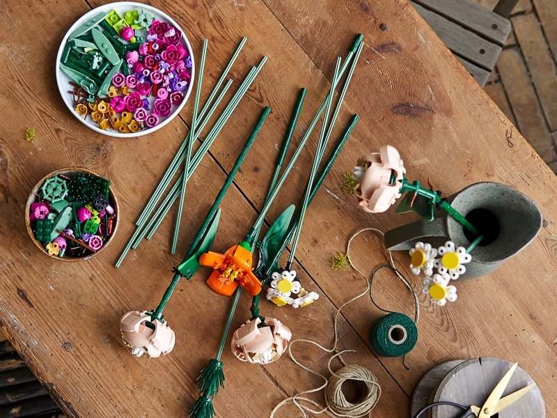Il set Bouquet di fiori LEGO è composto da 756 pezzi e presenta moltissime fioriture, in una gamma di colori molteplice che consente di personalizzare i fiori, dal bocciolo alla completa fioritura.