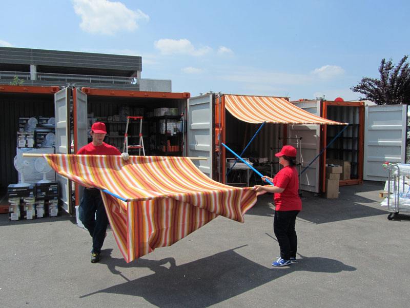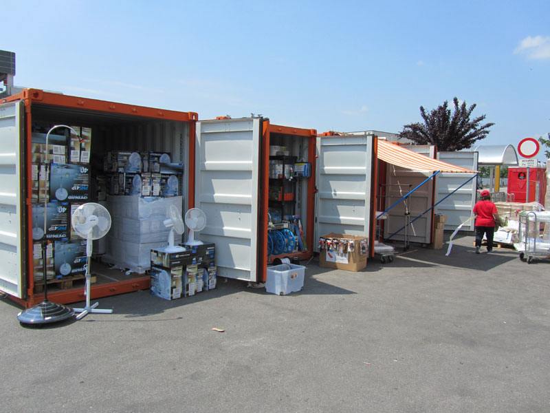 Certo i clienti non possono entrare nel punto vendita, ma vengono comunque serviti e accolti nella zona antistante all’ingresso dove sono stati montati dei container riempiti dei prodotti necessari per fronteggiare l’emergenza (tende, ventilatori, lettini e attrezzi di vario genere).